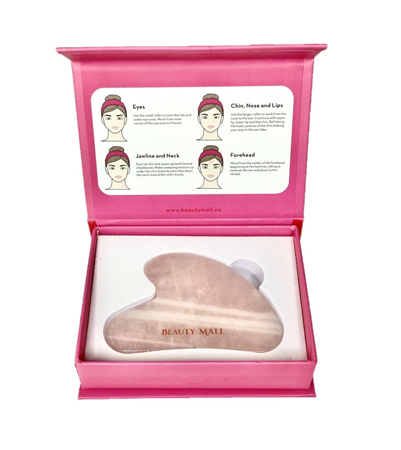 Beauty Mall tilbyr et utvalg av "Jade facial roller"og "Gua Sha". Det er tradisjonelle kinesiske skjønnhetsverktøy brukt for å forbedre hudens utseende og følelse. "Jade roller" gir en beroligende massasje, fremmer sirkulasjon og kan redusere hevelse, mens "Gua Sha" er formet for å stimulere lymfedrenasje, noe som kan fremme hudens fasthet og redusere fine linjer. Begge verktøyene går hånd i hånd med avslapning og velvære.