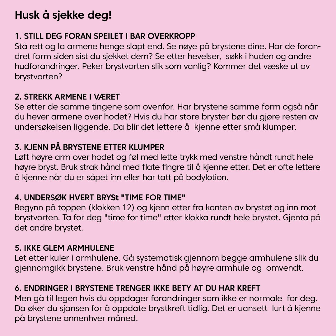 Langt færre norske kvinner har fått påvist brystkreft under koronapandemien. Det gjør det viktigere enn noen gang å bli kjent med brystene sine og ta endringer på alvor. Vi ønsker å minne alle kvinner der ute på å sjekke brystene sine jevnlig, og benytte denne tiden til å minne de du er glad i på å gjøre det samme.